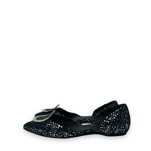 ROGER VIVIER Navy Silver Suede Buckle Sparkle Dots Accent Ballet Flats 38 US 8