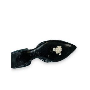 This ROGER VIVIER Navy Silver Suede Buckle Sparkle Dots Accent Ballet Flats 38 US 8 effortlessly combine elegance with a playful twist. Crafted from soft navy suede, they feature shimmering sparkle dots and a distinctive buckle accent, adding a touch of luxury and fun to your footwear collection. Perfect for elevating both casual and formal outfits, these ballet flats are a chic and versatile choice.