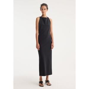 ROHE Black Open Back High Neckline Tie Strap Detail Floor Length Back Slit Dress