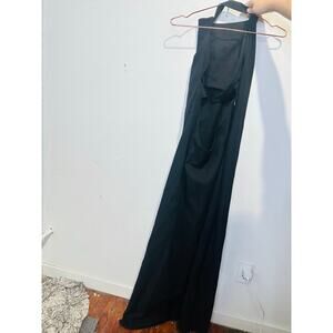ROHE Black Open Back High Neckline Tie Strap Detail Floor Length Back Slit Dress size 42