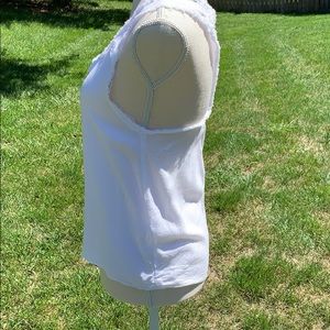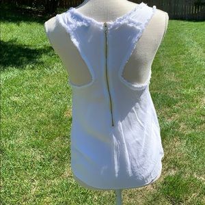 Distressed tank that has been pre-loved as well and has no stains and no holes. Has a gold exposed zipper down the back .