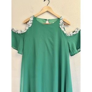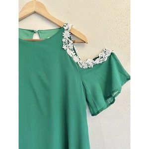 ROIII FASHION Emerald Green Embroidered Cold Shoulder Sz L