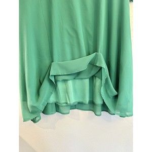 The dress is fully lined and collarless with a keyhole neck. It is embroidered with a solid pattern and has long sleeves. The dress length is short, and it comes in size L, with the color green. This dress is perfect for women who want to make a statement with their outfit. Excellent Preowned Condition Measurements Sleeve - 7" Armpit to Armpit - 20.5" Length - 33"