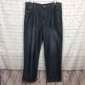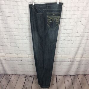 ROK Men’s Sz 44x34 Blue Jeans Denim Straight Leg Embroidered Pockets Whiskering