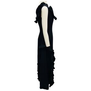 ROKH BLACK RUFFLE DETAIL LONG DRESS