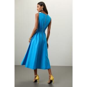 ROKSANDA COLLECTIVE Bright Blue V-Neck Sleeveless Zipper Back Midi Dress Size 6