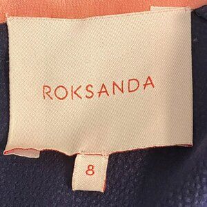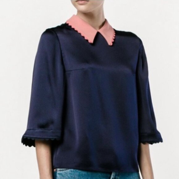ROKSANDA Navy Searsucker Silk Peter Pan Collar Blouse Size 8