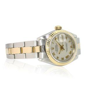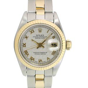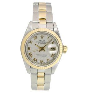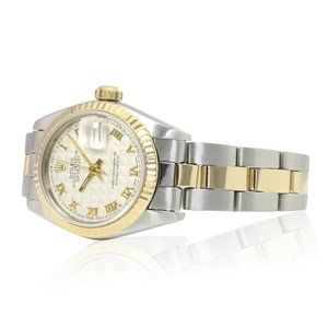 ROLEX DATEJUST CREAM PYRAMID ROMAN DIAL 18KY & STEEL JUBILEE TWOTONE WATCH 69173