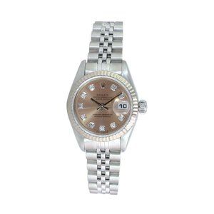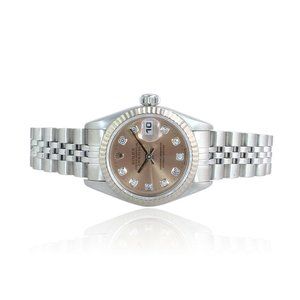 ROLEX DATEJUST SALMON DIAMOND DIAL 18KW FLUTED STEEL JUBILEE WATCH 26 MM 69174