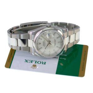 ROLEX DATEJUST UNISEX WATCH 36 MM SILVER INDEX DIAL STEEL SMOOTH OYSTER 116200