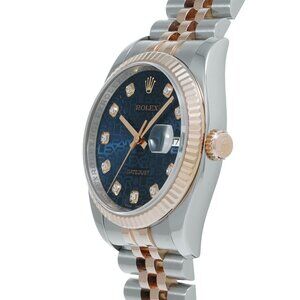 Details Movement:Mechanical Automatic / Cal.3135 Dial Color:Blue computer/diamond Case:stainless steel/Everose Gold Windshield material:Sapphire crystal windshield Bezel:Everose Gold Bracelet:Jubilee bracelet(stainless steel/Everose Gold)