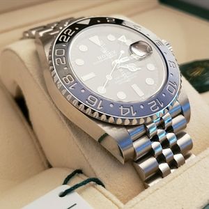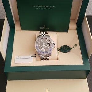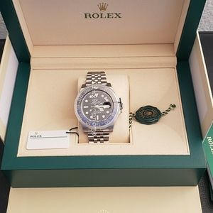 New ROLEX GMT II Model 126710BLNR, SS BLACK/BLUEl. Watch comes with box, papers, and warranty card.