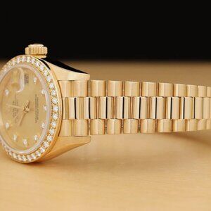 ROLEX LADIES PRESIDENT FACTORY DIAMOND 18K YELLOW GOLD WATCH