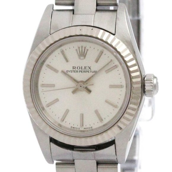 Used ROLEX Oyster Perpetual 76094 K Serial White Gold Steel Watch Polished (SKU: BF585156)