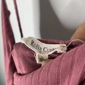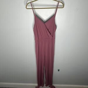 ROLLA COSTER Mauve Ribbed Strapless Tie Ankle Faux Wrap Jumpsuit Size Large. EUC.