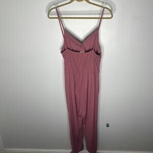 ROLLA COSTER Mauve Ribbed Strapless Tie Ankle Faux Wrap Jumpsuit Size Large