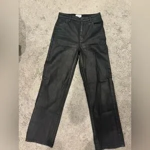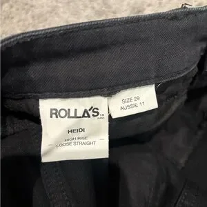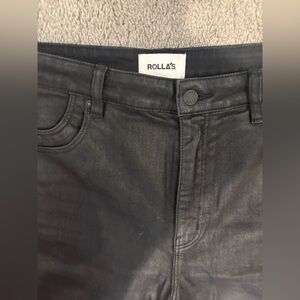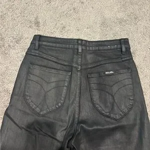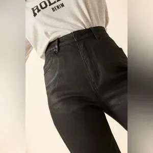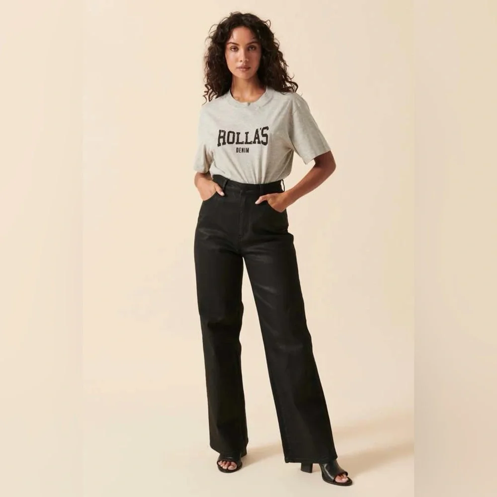 Brynn High Rise Wide Leg Trouser Jeans. Worn only once. Chic black straight wax coated jeans by ROLLA'S. Perfect for a stylish look.
