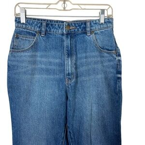 ROLLA'S Dusters High Rise Relaxed Jeans in G’Day Mate. Medium blue wash with no distressing. Relaxed tapered duster style. Zip and button fly.