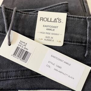 ROLLAS Eastcoast Ankle Skinny Jeans in Amphlett Black High Rise Stretch 26 NEW
