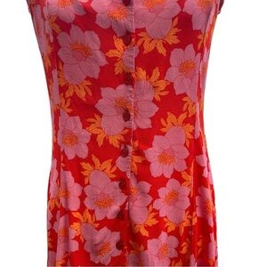 Perfect summer dress featuring a 90’s Y2K pink/orange/red floral design. Breezy and lightweight. Perfect for summer.