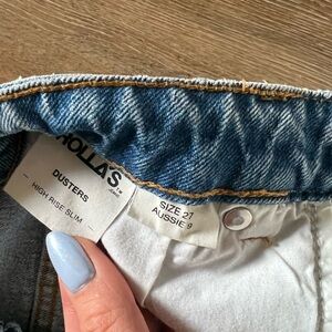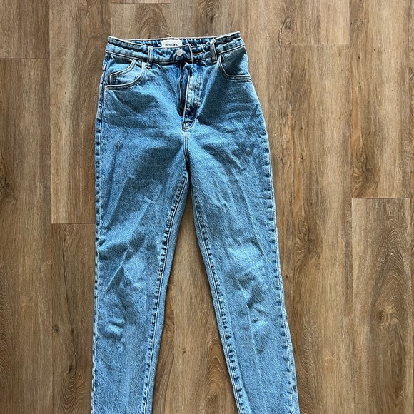 Stylish high rise jeans by ROLLA'S. Light blue denim. Slim fit- they do run small. Tag says 27 but they fit more like a 25