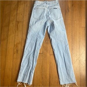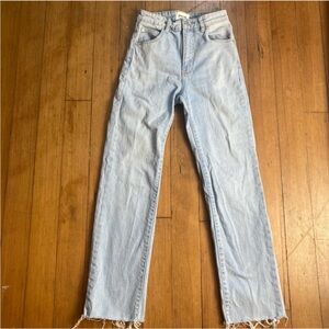 Rolla high rise straight light blue jeans. Perfect for versatile styling.