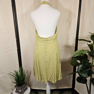 Stylish backless dress with halter neck. Button-down front. Ideal for warm days.