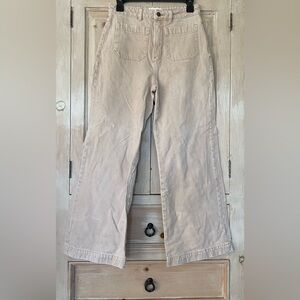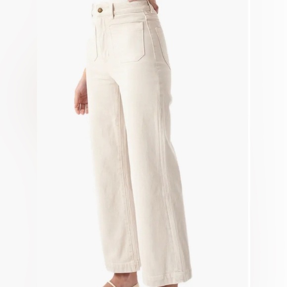 High rise, slim fit with a sailor wide leg. Fits smaller in the waist to eliminate gaps at the back waistband