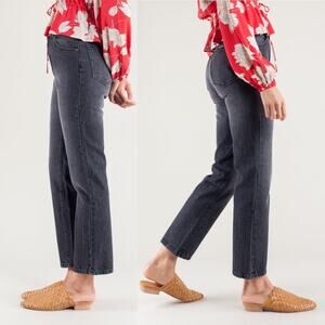 Fitted, slim straight jean with a high rise waistline and an ankle length leg.