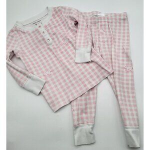 ROLLER RABBIT Baby 12-18M Pajama Set 2 PC Long Sleeve Pink Gingham Pima Cotton