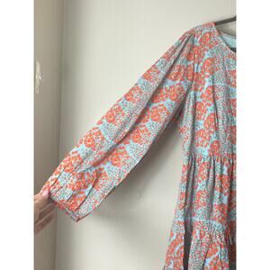 ROLLER RABBIT DRESS L TIERED RUFFLE BLUE ORANGE DITSY FLORAL DENING NORI BOHO CHIC -Excellent like new condition. Preowned, preloved & sustainable! -Size Large -Light ice blue and orange -100% cotton, tiered flare skirt w/ ruffles, long sleeve, back zip spring summer bohemian boho chic cottagecore romantic feminine girly summer fall vacation date night resort cruise resortwear preppy classy classic casual cocktail party prairie core fairy garden party breathable sustainable avant garde wearable art lagenlook whimsical