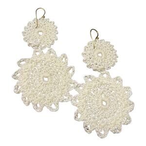 ROLLER RABBIT Macrame Earring Ivory White Hook Crochet Boho Casual NEW