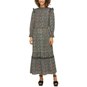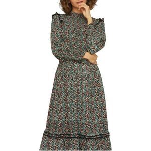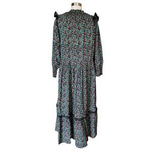ROLLER RABBIT Maxi Dress Etoiles Delfia Black Starry Print Shift Long Sleeves