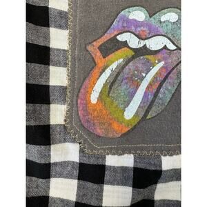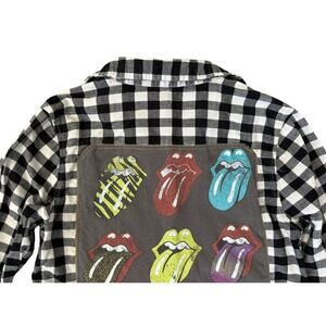 ROLLING STONES 60s 70s Rock Retro Vintage Upcycled Plaid Flannel Kids Shirt Sz L 10/12