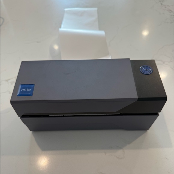 Rollo USB thermal label printer. Used condition works well but has a few scratches and scuffs, see pictures. Is missing two of the sticky feet squares on the bottom as well.