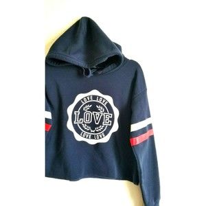 ROMA CONCEPT Blue Crop Hoodie Sweatshirt Women's Unique LOVE By rosee size Med