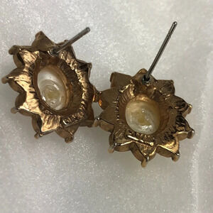 ROMAN Earrings & Enhancer Vintage Faux Pearl & Rhinestone SET Gold Tone
