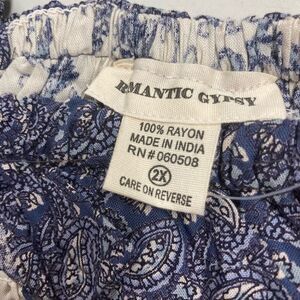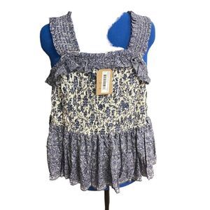 ROMANTIC GYPSY Tank Top Blue & White Smocked Ruched Bodice Sleeveless Size 2X