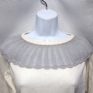 ROMANTIC Vintage Inspired Ivory SWEATER w Silver Metallic Mesh Collar Pearl L