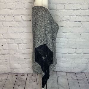 ROMEO AND JULIET COUTURE X GOSSIP GIRL Grey and black fringe poncho sweater