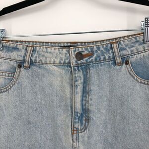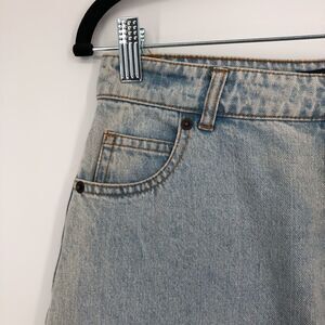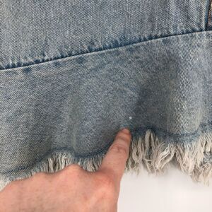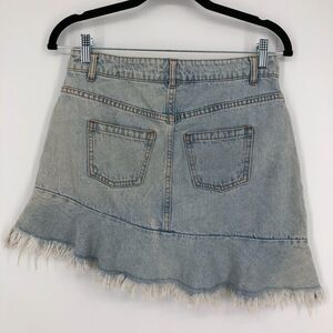 Romeo & Juliet Couture light wash assymetrical raw hem denim mini skirt. Size womens Small.