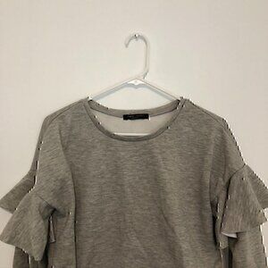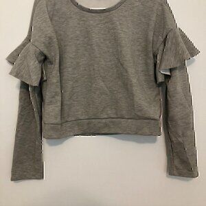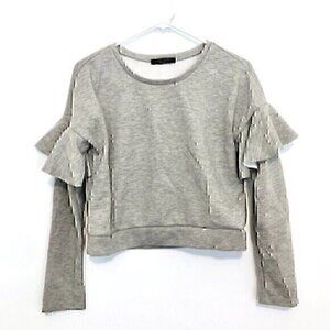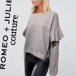ROMEO JULIET COUTURE Heather Gray Ruffle Sleeve Crop Cropped Crewneck Sweatshirt