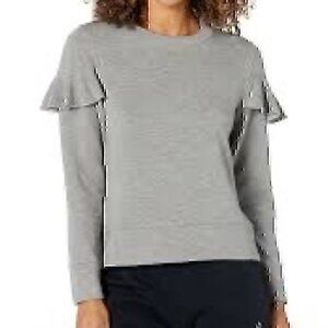- solid heather heathered gray long sleeve ruffle trim cropped crop pullover crewneck sweatshirt