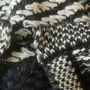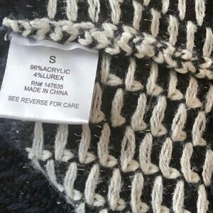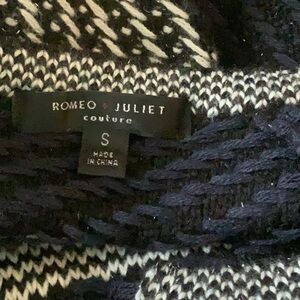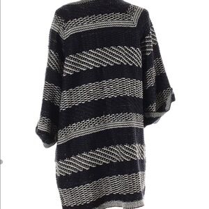 Romeo & Juliet Couture oversized sweater cardigan. Hook closure. 3/4 sleeves, black with stripes and sparkle threats weaved throughout. Excellent condition.
