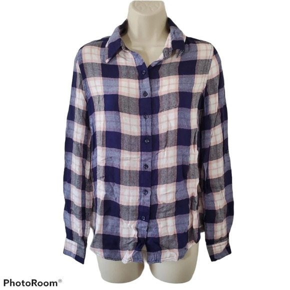 Pink and blue button down long sleeved flannel top. Size XS. EUC.