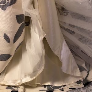 Halter neckline, accented by a criss cross exposed back. Approximately 7” zip up/ hook + eye closure. Worn/ dry cleaned 1x• fun wedding dress 👗