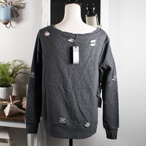 NWT ROMEO & JULIET black French Terry Distressed Sweatshirt size S