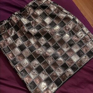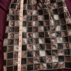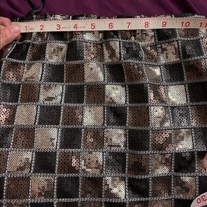 Beautiful metallic browns & black with sequins detailing Wide elastic band at top (no zipper) soft comfortable fabric lining , gently used.