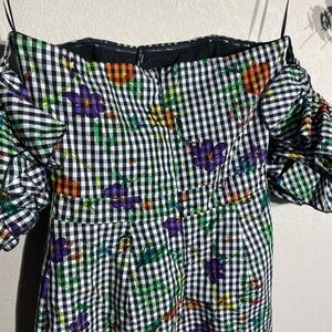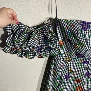 ROMEO+JULIET COUTURE Black Gingham Floral Puff Ruffle Sleeve Mini Dress Size S