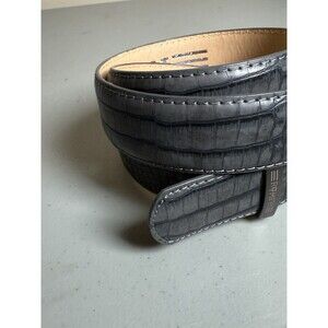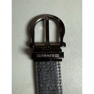 This ROMFH gray croc printed belt is in overall great condition. When I purchased it, there was a tag stuck to the inside and when it was removed, part of the inside leather came off. This was worn a few times.